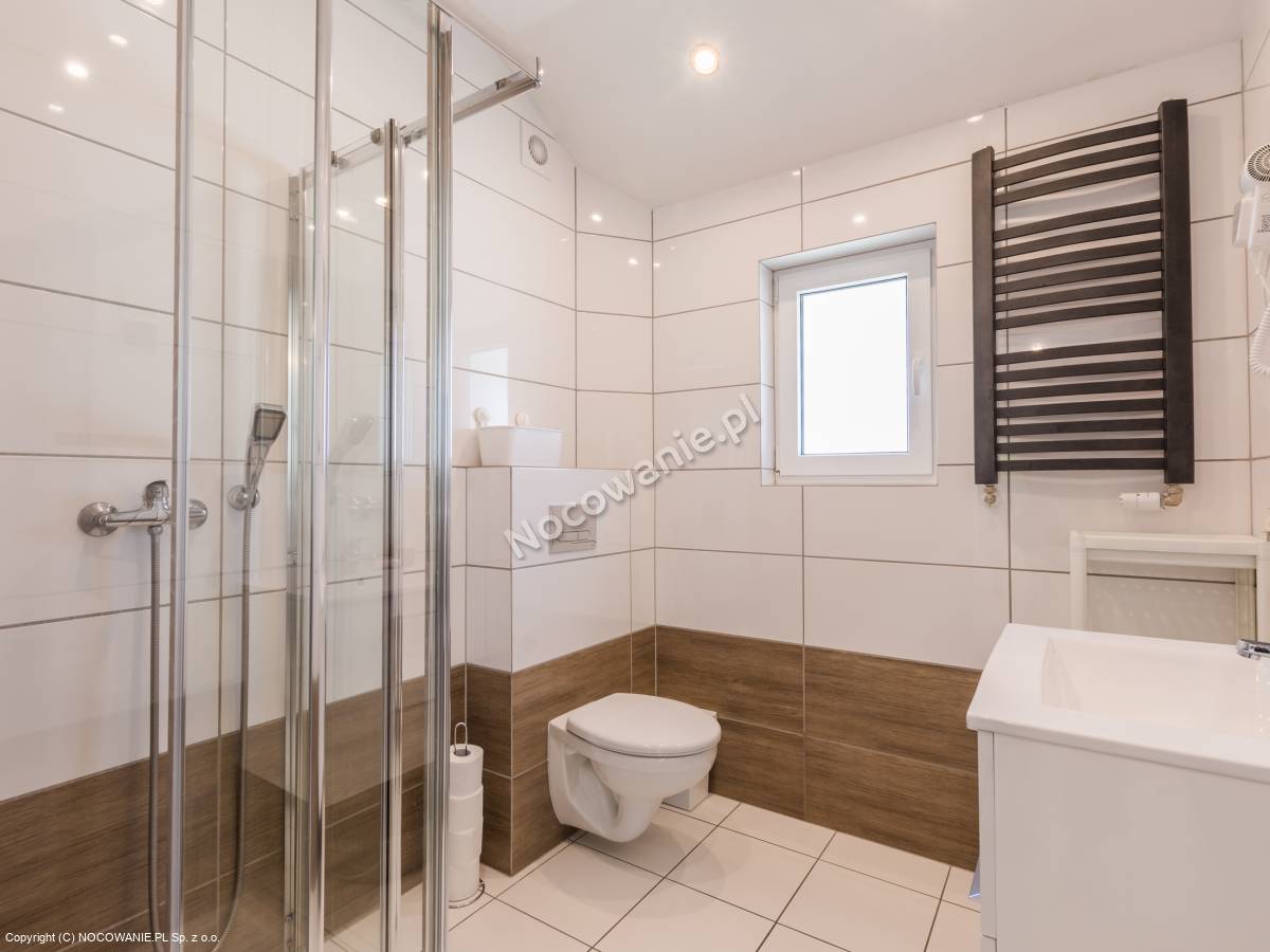 W apartamencie znajduje się salon z rozkładaną rogówką i w pełni wyposażonym aneksem kuchennym wraz ze zmywarką, część jadalniana, łazienka z kabiną prysznicową oraz pralką, sypialnia z szerokim łóżkiem małżeńskim oraz druga sypialnia z rozkładaną rogówką.