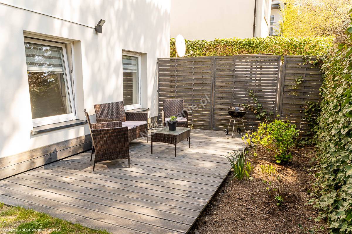 Dodatkowym atutem apartamentu jest bezpośrednie wyjście na ogród oraz w pełni umeblowany taras w zacisznym miejscu w ogrodzie.